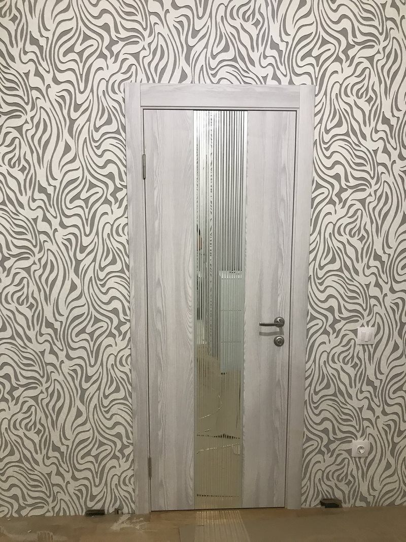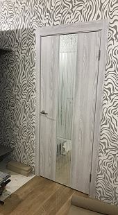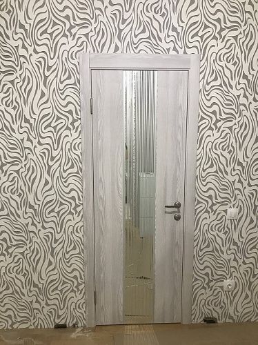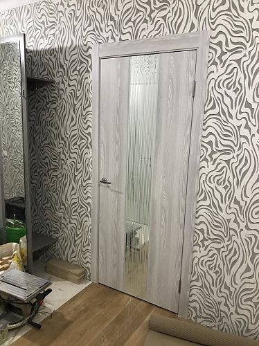 Дверь ПО EXZ 6E Клен айс стекло зеркало с рисунком из Экошпона COVERFLEX (Двери Нева) в Клину с установкой и доставкой